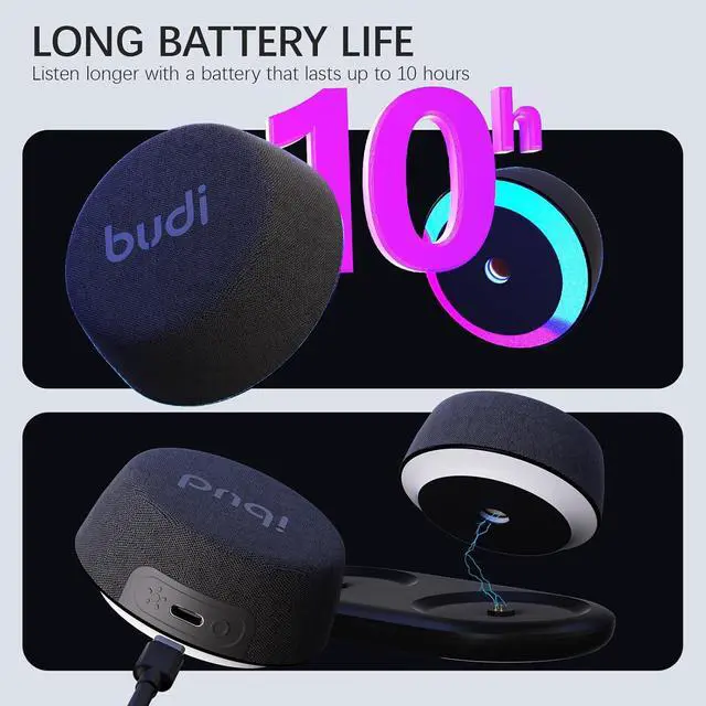 Immersive Sound & Light ShowBUDI Magnetic dual-speaker design delivers precise 3D audio with deep bass and clear spatial positioning. Built-in 5-color RGB lighting syncs to music rhythms, creating vibrant visual effects for any setting. Compact yet powerful, it's ideal for gaming, movies, or partieselevate your audio experience with dynamic sound and light.