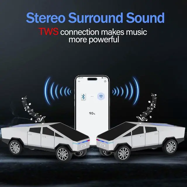 Realistic Truck Design This car model Bluetooth speaker features an exquisite truck design with meticulous attention to detail. Its realistic tires and metallic body make it both collectible and decorative, making it an ideal ornament for car enthusiasts