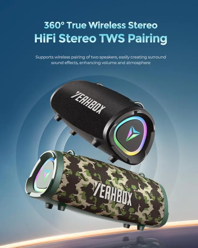 Bluetooth 5.3 Fast & Stable Connection + Multi-Input Support Equipped with Bluetooth 5.3 for faster and more reliable pairing, plus AUX and TF card input options for flexible listening anytime, anywhere.