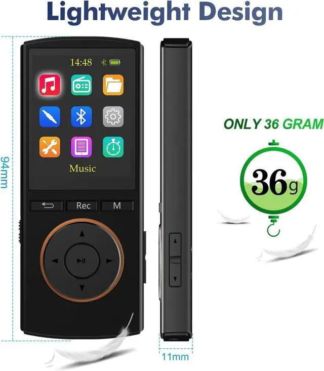 Long Battery Life ---This MP3 playe allows you enjoy real lossless music up to 10 hours. And it fully charged within 0.5-1 hours.It is your rare walkman music player for travel or sport.