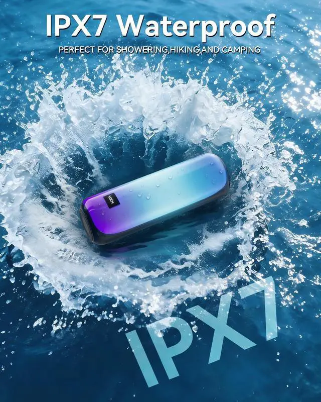 [Tough & Weather-Resistant] Engineered to handle rough use and adverse weather conditions, this speaker features a durable design and an IPX7 rating for protection against water splashes and spills. It's an ideal choice for outdoor events, and is perfect for use at parties, at the pool, on the beach, while camping or hiking, and more