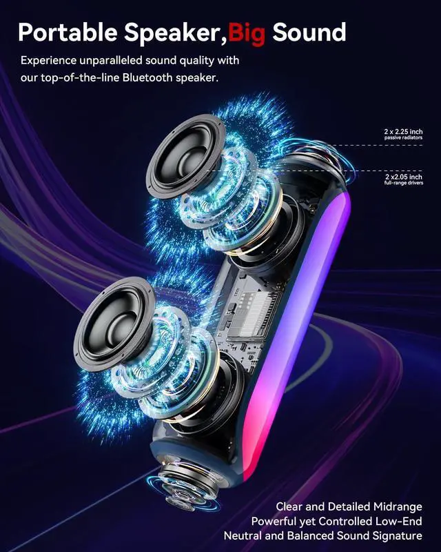 [Immersive Sound Experience & Dual Connectivity] Experience unparalleled sound quality with this wireless Bluetooth speaker's 2 drivers and advanced technology that delivers powerful, well-balanced sound with minimal distortion. Connect two speakers together to create an immersive stereo sound experience and fill any room with powerful sound. Perfect for gaming, music, and movie playback