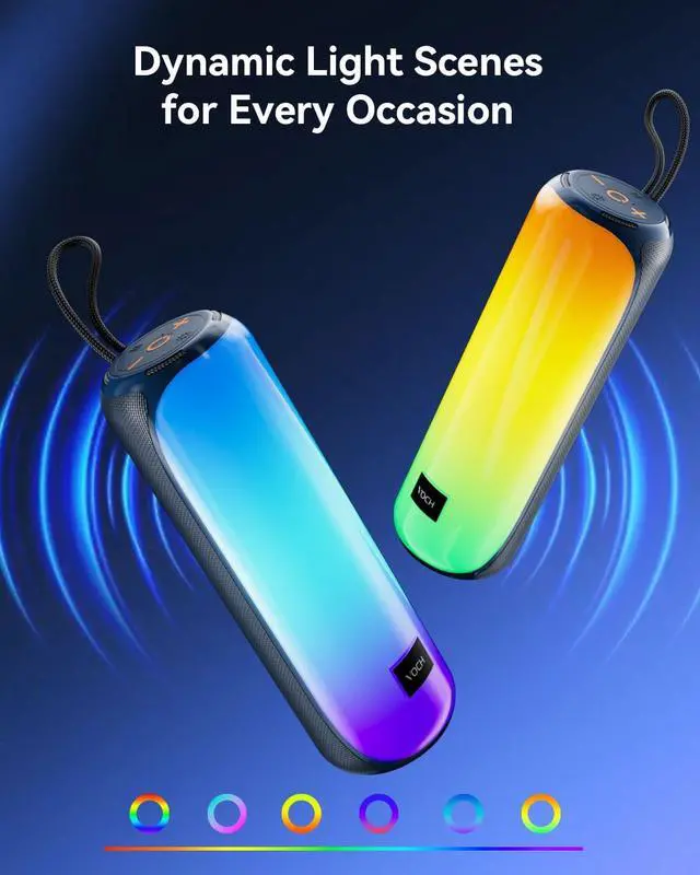 [Long-lasting Playtime & Extended Bluetooth Connectivity] Experience extended playtime with up to 20 hours(50% Vol and light off) per charge and extended wireless range with Bluetooth 5.4, reaching up to 33 feet from your device. The multicolor lights on the speaker can also be turned off with a simple button press to save the battery and adapt to your needs. Keep in mind that the actual playtime can vary depending on volume level, audio content, and usage