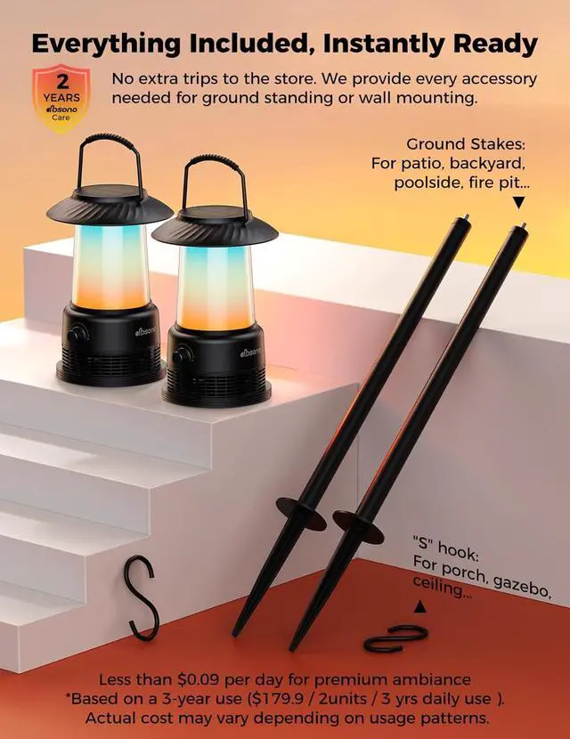 7 Dynamic LED Modes & 360° Light Show: Transform your patio, garden, or any outdoor space into a vibrant atmosphere with 7 dynamic LED lighting modes. Choose from flickering spark, soothing gradient, rhythmic strobe, and more to perfectly match your music and mood. Equipped with ground stakes for easy installation, these speakers can be effortlessly planted firmly in your lawn, making them the perfect versatile lamp for any gathering