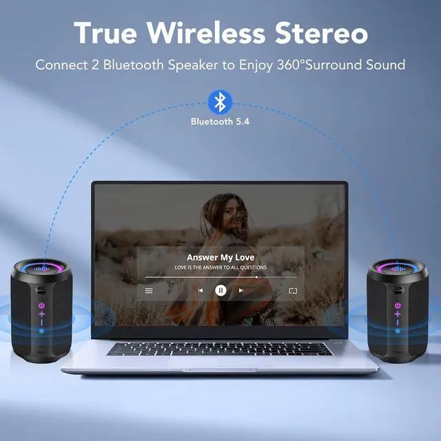 Advanced Bluetooth 5.3: Equipped with the latest Bluetooth 5.3 chip, this speaker ensures fast pairing and a stable connection.Benefit from a longer connection range, faster pairing, and stable audio streaming, ensuring you can keep the party going from anywhere within range
