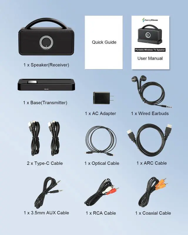 Advanced Technology: SavvyBloom wireless TV speakers use 5.8 GHz wireless technology, which has a faster signal transmission speed and stronger anti-interference ability.