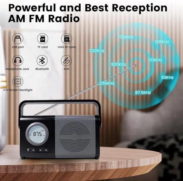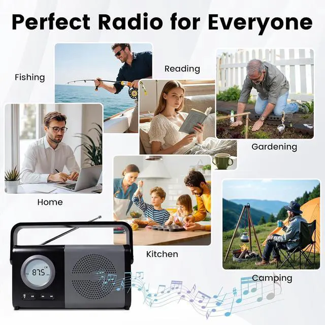 Compact & PortableThis LCD radio features a portable design (9.5 x 5.12 x 3.54 inches, 1.3 lbs) with a wide handle for easy carrying. Whether youre on a camping trip or relaxing in the backyard, this AM/FM radio delivers endless entertainmenteven in areas with no cell service!