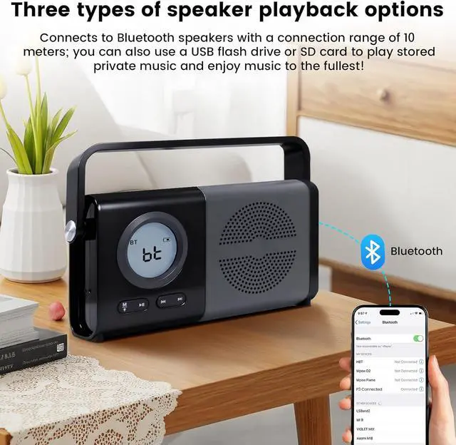 Easy to Operate & User-FriendlyUnlike other small radios with cumbersome controls, our shortwave radio features a larger size for easier usesuitable for both the elderly and children to operate effortlessly. With intuitive function buttons and an LCD display, operations are simple and clearly visible. Equipped with a portable handle, its easy to carry for outdoor picnics, hiking trips, daily home use, and office settings, allowing you to enjoy audio entertainment anytime, anywhere!