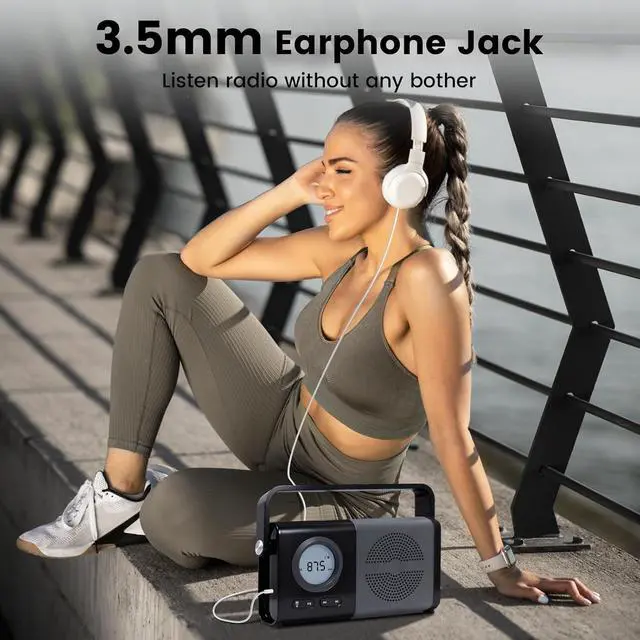 Superior HIFI Sound & Headphone JackEquipped with a carefully tuned 3W full-range speaker and bass enhancement system, it delivers clear, crisp highs and powerful, deep basseffortlessly playing your favorite music or programs. A great choice for radio enthusiasts! Additionally, a 3.5mm headphone jack is included, designed specifically for those seeking private listening. Take this portable radio to picnics or camping trips and create wonderful memories with friends!