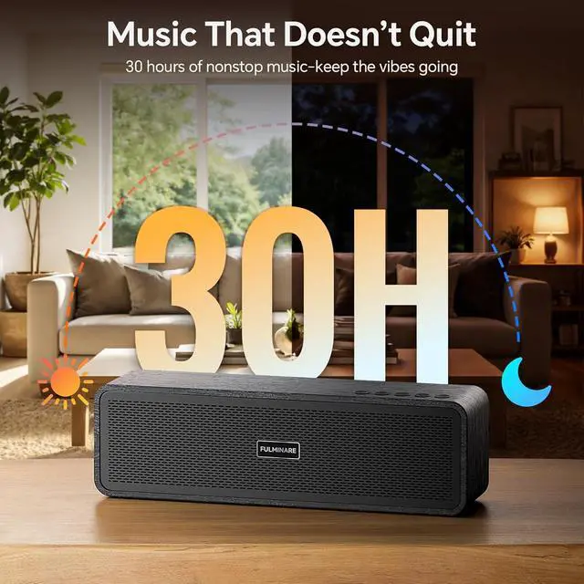 [All-Day Playtime]:Enjoy up to 30 hours of continuous playtime, perfect for home use, gatherings, and long listening sessions without frequent recharging.