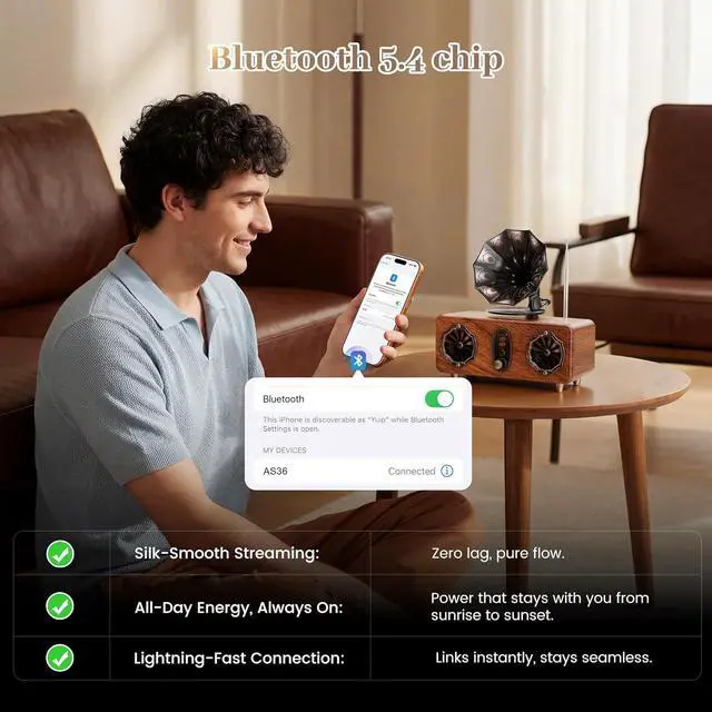 Bluetooth 5.4 & Wired Flexibility Equipped with the latest Bluetooth 5.4 chip, connections are established almost instantly and remain stable throughout use. For non-wireless sources, simply use the AUX-in, TF card slot, or USB portplay from a laptop, a thumb drive, or a preloaded memory card without extra adapters