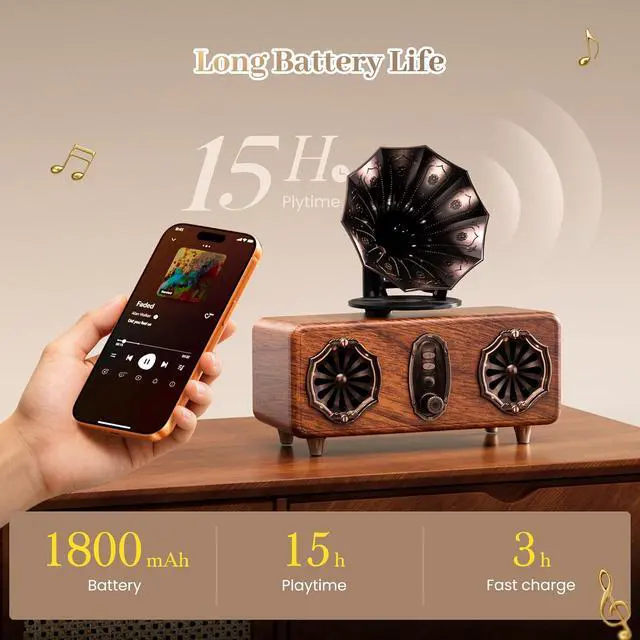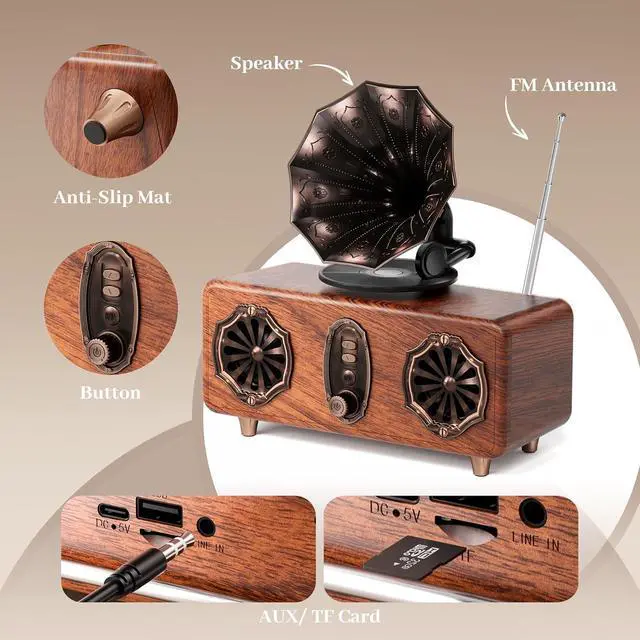 Retro Styling That Complements Any Space The wood-grain finish, rounded edges, and classic dial design give this speaker a timeless look. Whether placed on a kitchen counter, a living room shelf, or used as part of a vintage bar setup, it blends visual charm with practical audio performancean ideal choice for gifting during holidays or celebrations