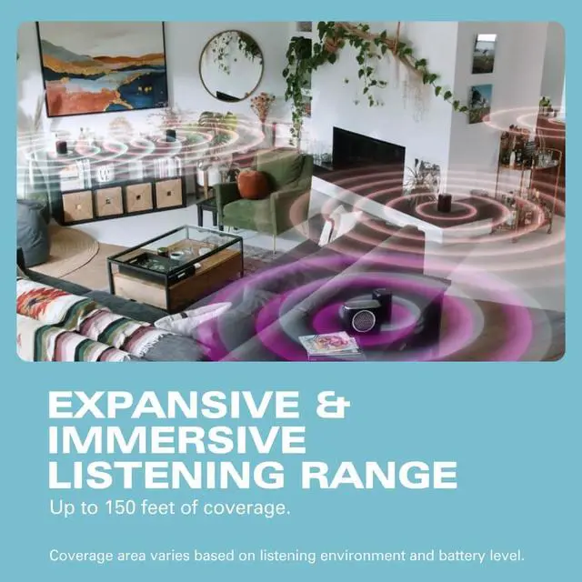 FULL SOUND WITH LONG PLAYTIME: Up to 98 dB at 1 m; up to 30 hours at 50 percent volume, battery life varies with volume; Bluetooth range up to 150 ft