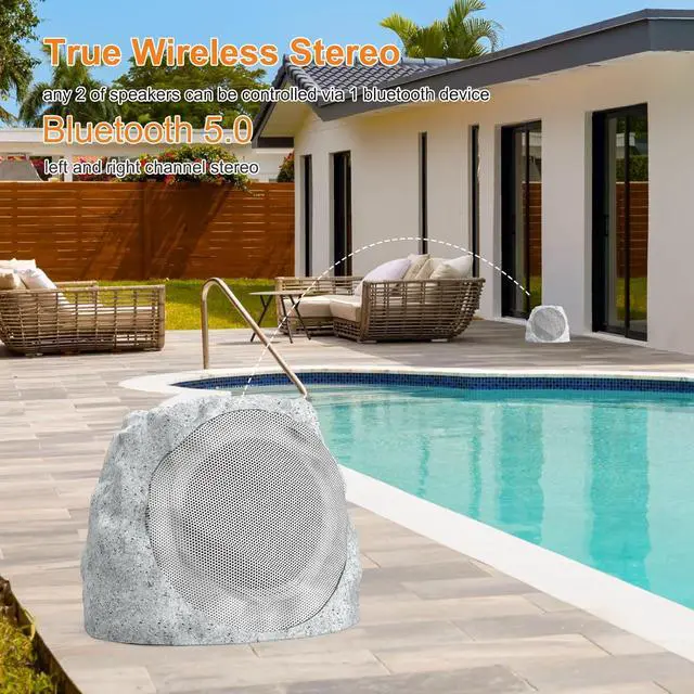 WIRELESS BLUETOOTH & Pair TWS System: outdoor rock speakers waterproof can be paired via Bluetooth 5.0 up to 33 feet, you can stream music from your smartphone, tablet. easily use the TWS function to pair any 2 outdoor bluetooth speakers , rock party via only 1 bluetooth device.Important,Disable your Phone "Reduce Loud Audio" for normal speaker volume, because when this setting is on, will get low volume. have to turn it off,how to operate it? just go back to product link for a video guide