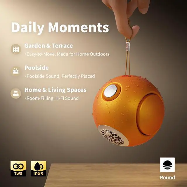 Designed for Everyday Versatility with Splash Protection Engineered for real-world flexibility, the speaker includes discreet splash resistance for confident use in kitchens, balconies or poolside settings . Maintaining premium aesthetics while supporting modern lifestyles.