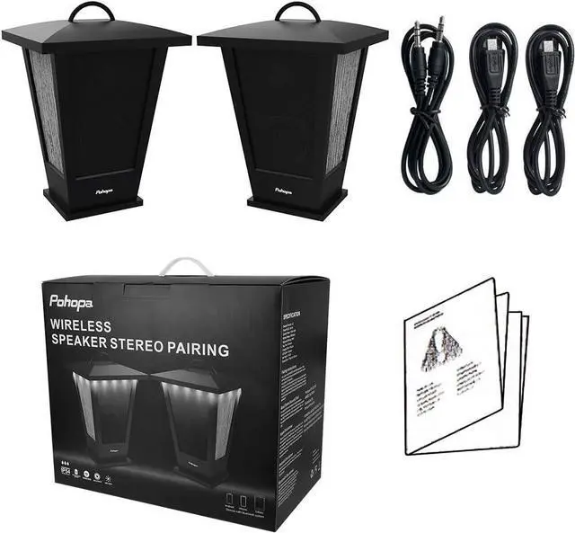 WIRELESS STEREO DUAL PAIRING With TWS (True Wireless Stereo) technology, these outdoor Bluetooth speakers let you pair two units for a robust 20W stereo surround sound experience. The Pohopa EF-B210G Indoor/Outdoor speakers deliver rich, immersive audio that feels like your favorite artist is performing live in your space. The main and secondary speakers automatically sync within 5 seconds of turning them on, and you can control both speakerspower and lightingvia a single unit for ease and convenience.