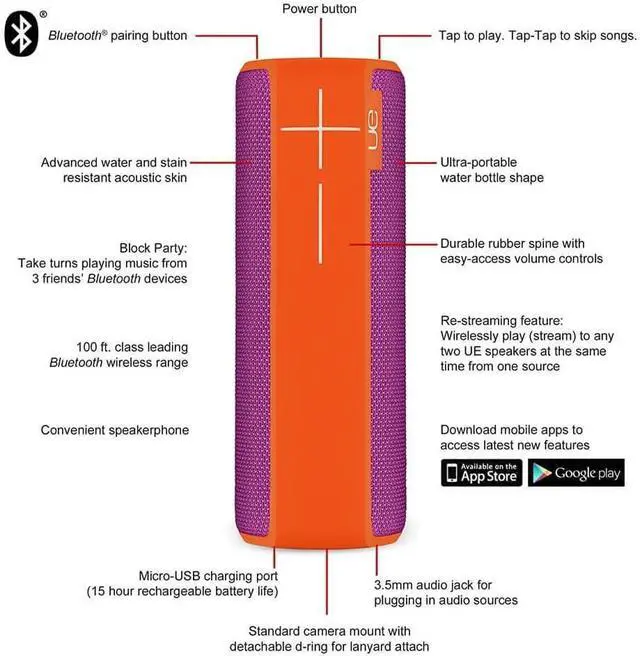 15-hour battery life and 100 ft. Bluetooth wireless range (Actual battery life will vary with use, settings and environmental conditions. Rechargeable batteries have a limited number of charge cycles)