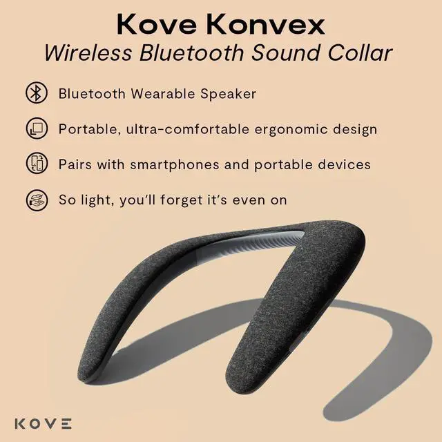 Fashion Your Music Wherever You Go: Step into soundwear with Konvex, our Wireless Bluetooth Sound Collar. Ergonomically designed for true comfort and immersive sound without headphones, you can stay aware of whats around you. Workout, kick back, or enhance your gaming with soundwear so light, youll forget its even on.