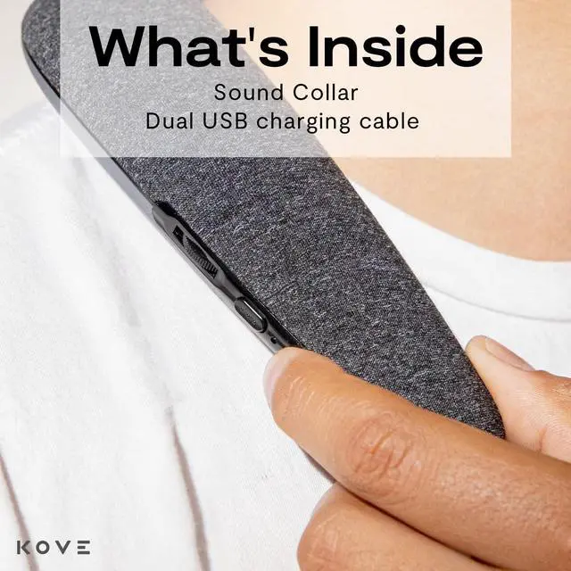Whats Inside: Includes the Konvex Wireless Bluetooth Sound Collar and a dual USB charging cable.