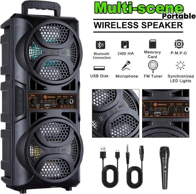 Bluetooth Speaker with SubwooferThe bluetooth speakers is big powerful portable stereo bass speaker, it have 2 6.5-inch loudspeakers. Output Power 15W surround sound and amazing bass sound. This Portable speaker is very suitable for outdoor and indoor home party.
