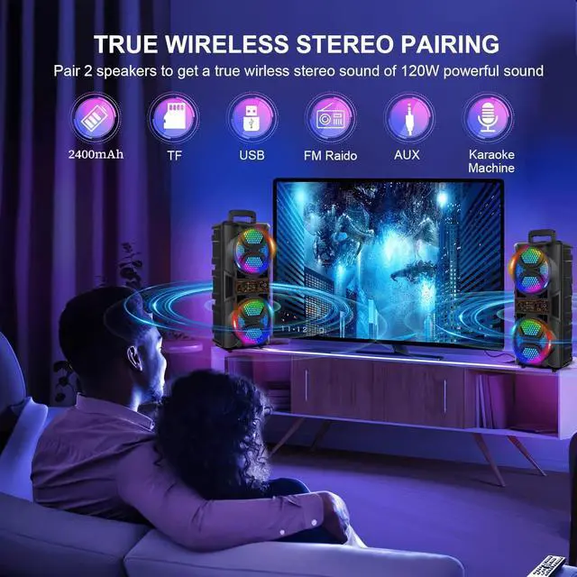 Create a Synchronized Sound System with TWS Connect two identical portable speakers wirelessly to activate TWS mode and enjoy a wider, more immersive stereo soundstage. Whether for karaoke sessions, music playback, or home entertainment, the stereo surround experience adds depth and realism to your audio.