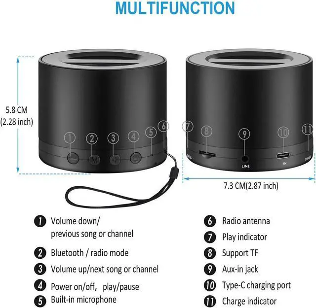 [Versatile Functionality] This bluetooth wireless stereo speaker supports a 32gb expandable memory card (not included) and includes a computer sound cable function. with its built in microphone you can make smart calls effortlessly.