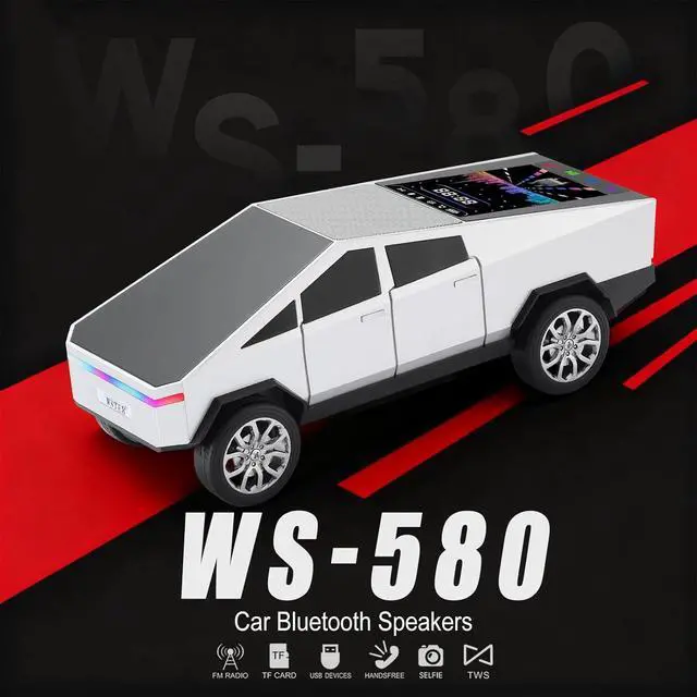 Futuristic Pickup Replica with LED Display Screen Modern truck-based design with movable wheels and an integrated LED display screen that shows basic mode and playback information.