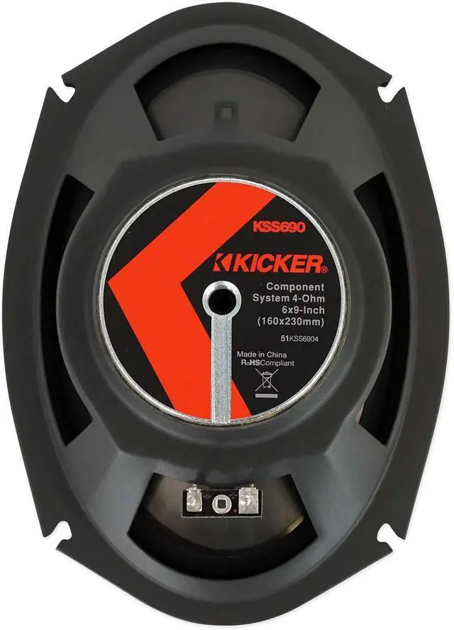 This bundle includes (2) Kicker 51KSS369 3-way component speaker systems and (1) ROCKBOX PRO V2 6.5 in portable Bluetooth speaker. Each Kicker system features 6x9 in woofers, 2-3/4 in midrange drivers, and 1 in tweeters with an optimized in-line 12 dB crossover network.