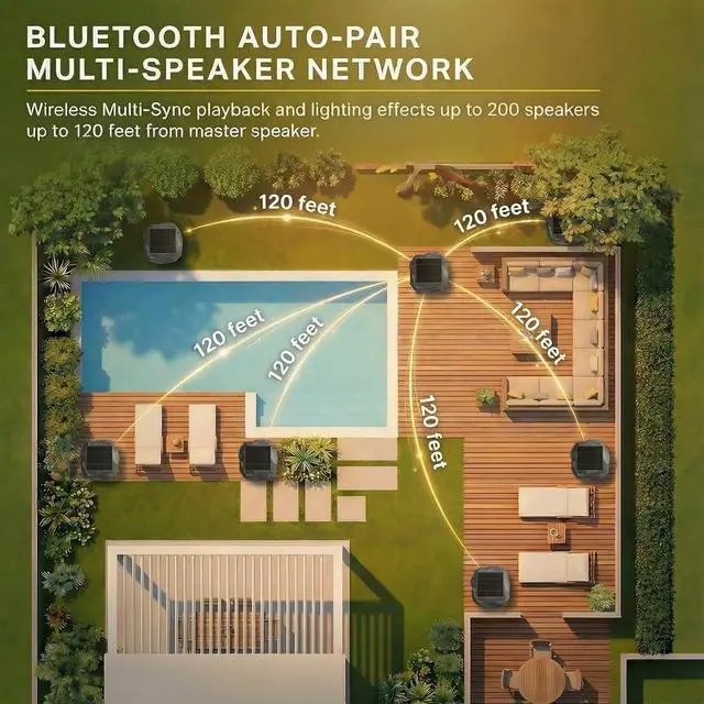 Bluetooth 5.4 + Included Infrared Remote for Full Control:Enjoy seamless wireless streaming up to 120 ft and one-tap TWS sync to pair multiple speakers. The included infrared remote lets you easily adjust volume, skip tracks, and control the LED light modes from a distanceno need to touch the speaker.