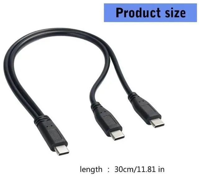 • 30cm USB Type C to Two Type C Male Cable Fast Speed Charging Cord for Smartphones and Tablets Power Supply