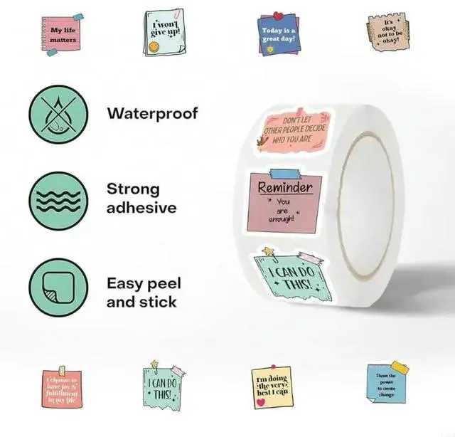 • 500Pcs Inspirational Sticker Motivational Quote Label Sticker for Water Bottle Scrapbook Journal Laptop Guitar Luggage