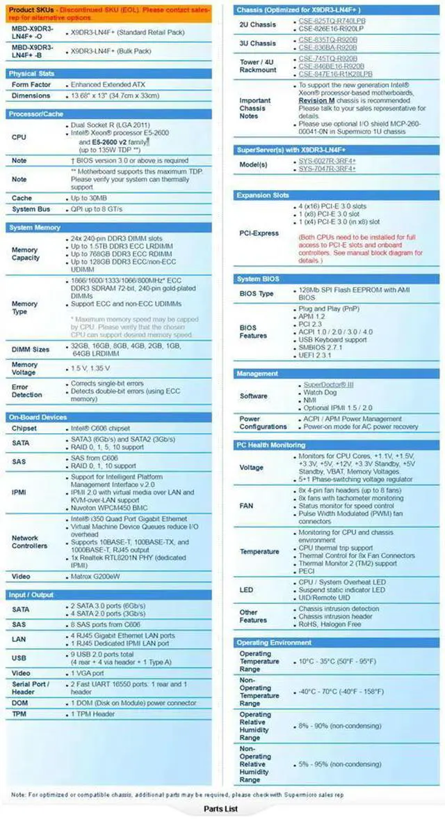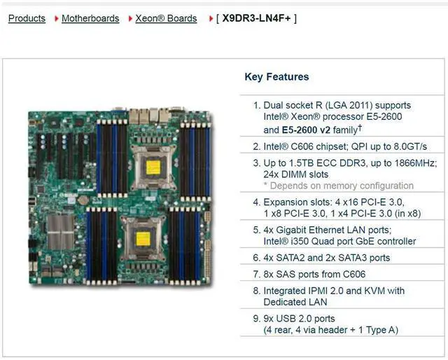 • X9DR3-LN4F+ For 2-Way Server E-ATX Motherboard 2011 C606 DDR3 Xeon processor E5-2600 and E5-2600 v2 Family