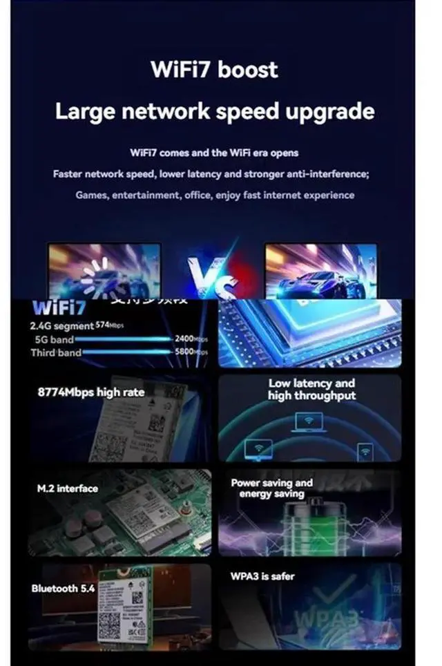 • 7 BE200 Wireless Network Adapter Receiver Tri Band 2.4G/5.8G/6Ghz 8774Mbps For Win 10 11 Linux