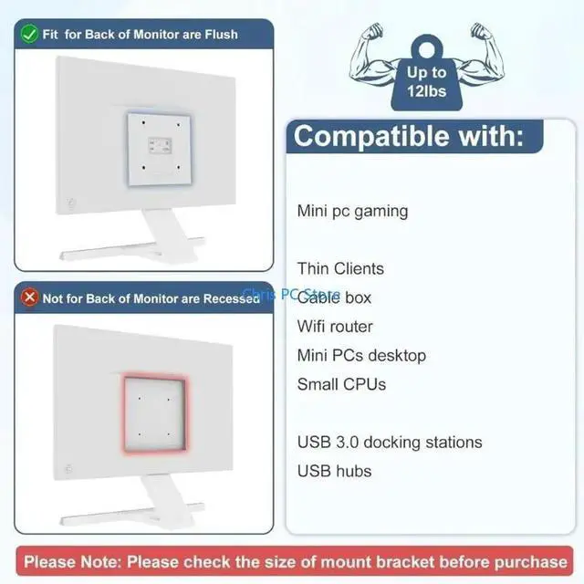 • Small PC Mount Bracket Adjustable Mounting Space Saving Computer Holder Desk