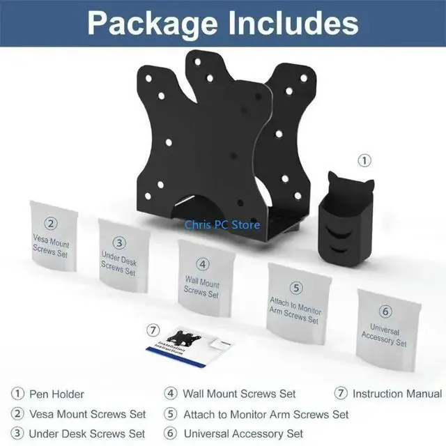 Small PC Mount Bracket Adjustable Mounting Space Saving Computer Holder Desk