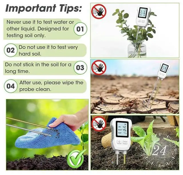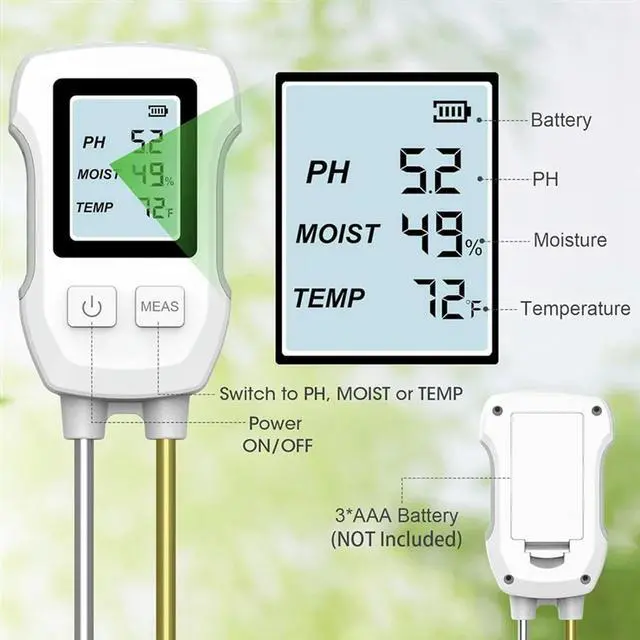 • 3 In 1 Soil Moisture Meter, Digital Plant Moisture Meter For Temperature/Soil Moisture/PH Meter, Soil Test Meter