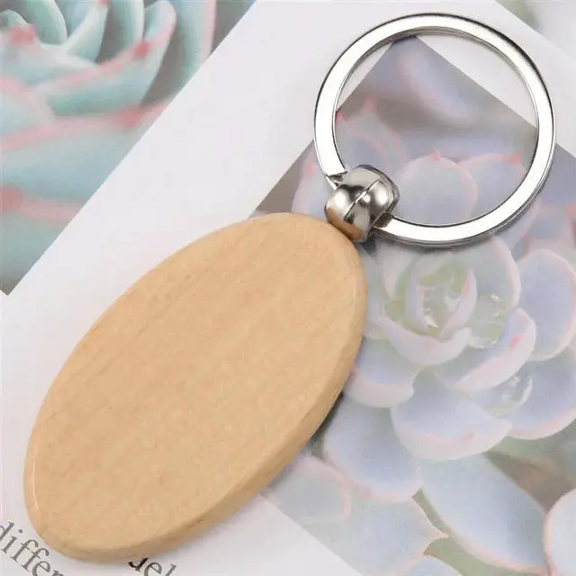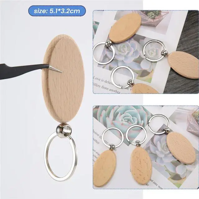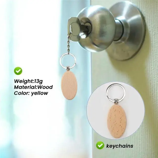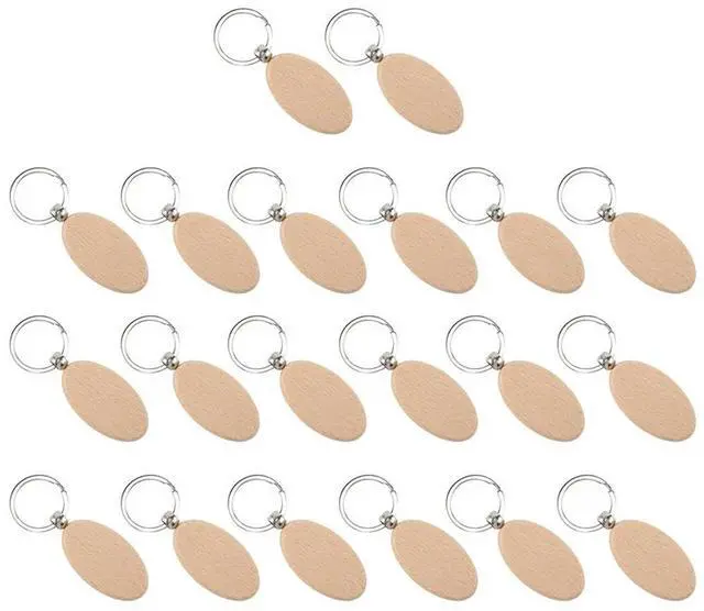 20Pcs Blank Wooden Key Chain Diy Wood Keychains Key Tags Gifts Yellow