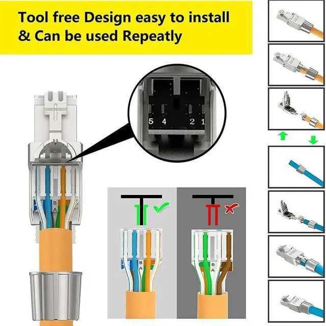 • 6 Pcs For RJ45 CAT7 Connectors Tool Free Shielded Toolless Modular Network Plug For Installation Cable