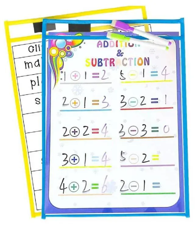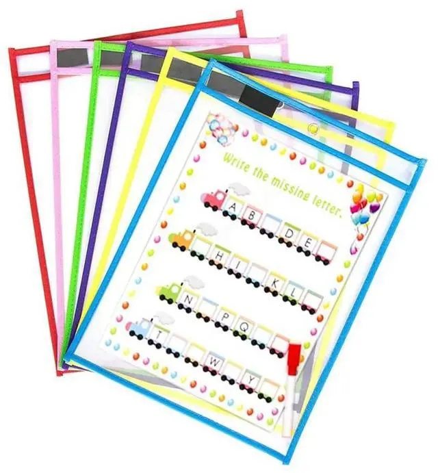 • Reusable Dry Erase Pockets, 18 Pack Reusable Dry Erase Sleeves, Assorted Colors Sheet Protector