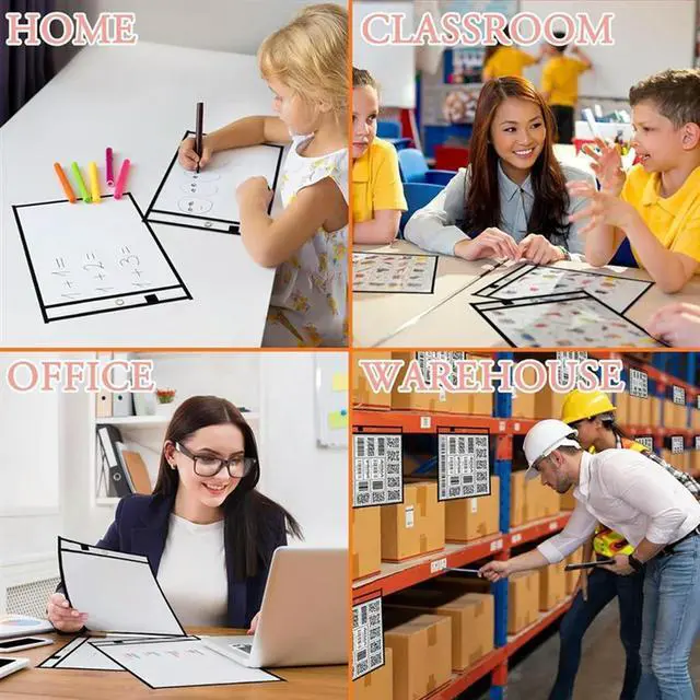 • 30 Packs Oversized Dry Erase Pockets Reusable Sleeves 10X13 Job Ticket Holders, For Teacher School Classroom Office