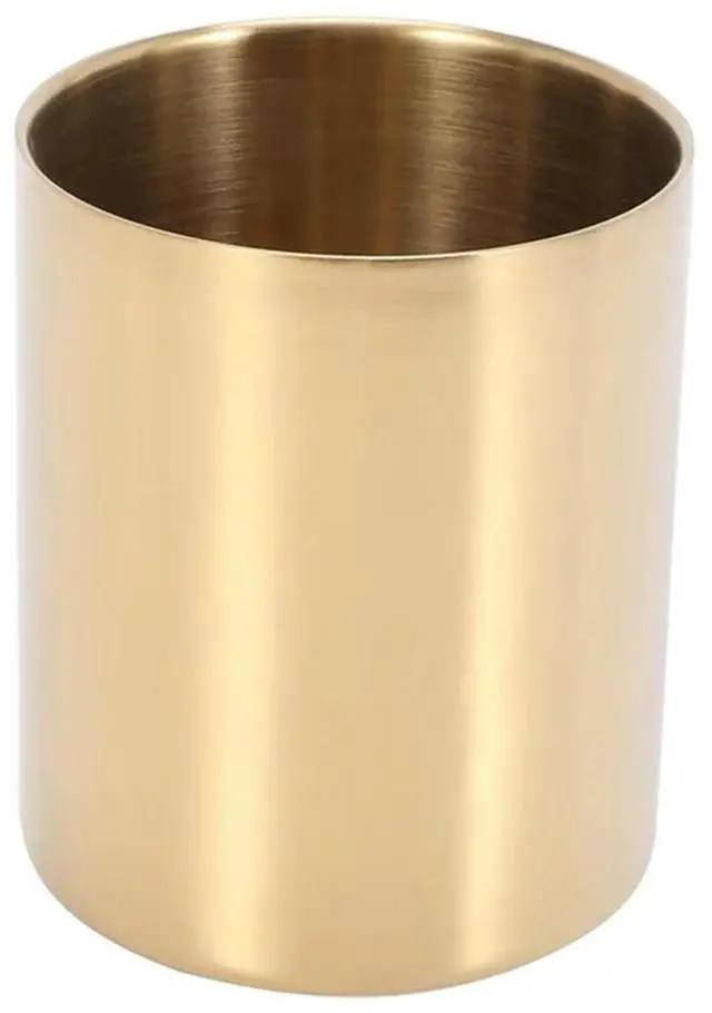 • 6-Piece Pencil Cup Holder Pen Pot Makeup Brushes Holder Desk Stationery Organizer Stainless Steel (Gold)