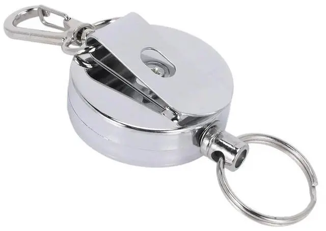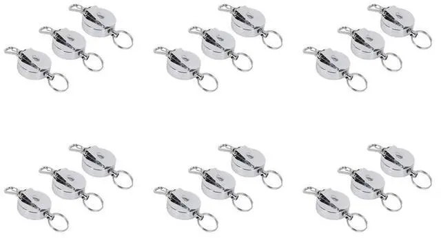 18 Pcs Stainless Silver Retractable Key Chain Recoil Keyring Heavy Duty Steel