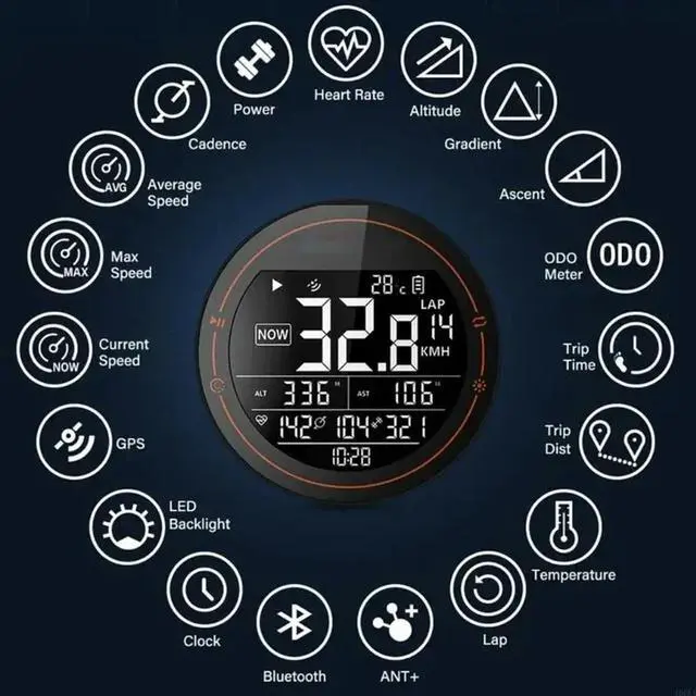 • 1 Set Bike Computer Fast Positioning Accuracy Auto Shutdown Night Readable 2.5inch Display Type C Charging