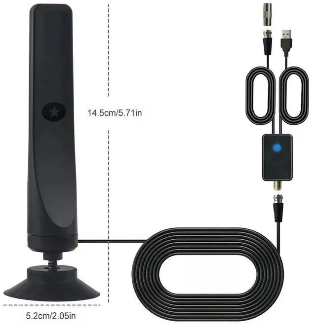 • TV Antenna with Booster HD Antenna Support 4K 1080P Suction Cup TV Antenna 25DBI Plug Play for TV