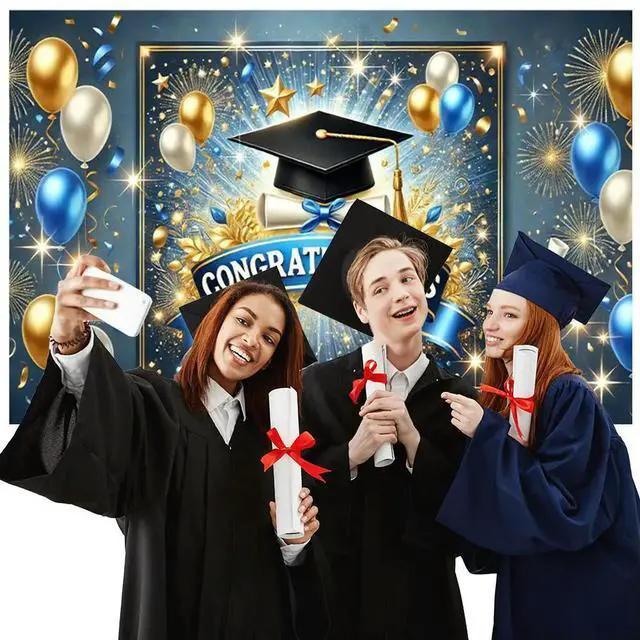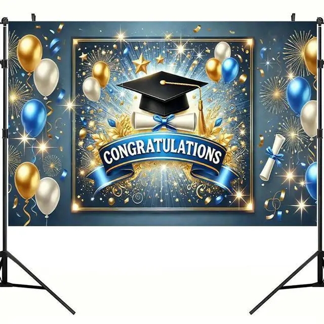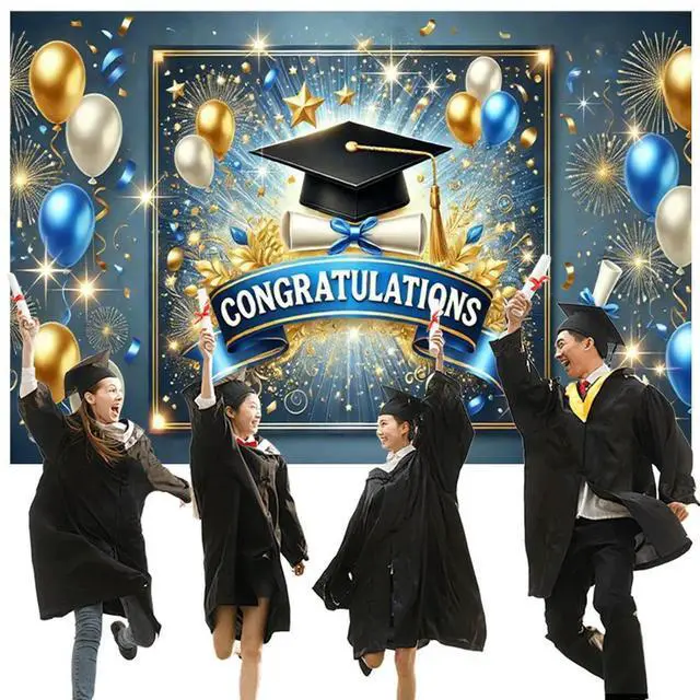 • Congrats Grad Photography Background Cloth Wear Resist Colorful Photo Banner Bachelor Hat Photo Backdrop for Party Props