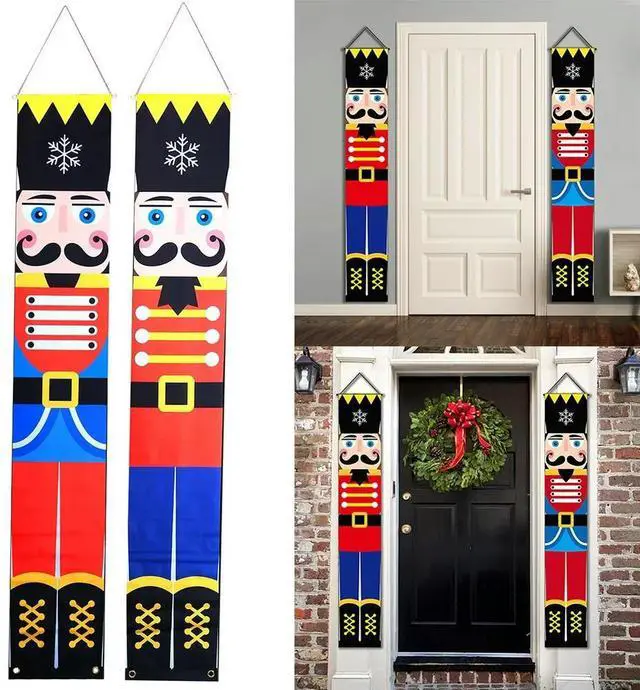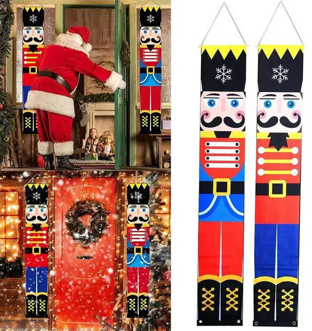 2 Pcs Xmas Soldier Model Banner Holiday Hanging Banner Xmas Decoration Christmas Couplets for Front Door Family Year Party