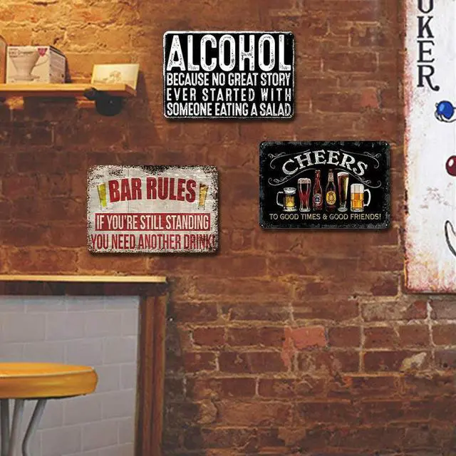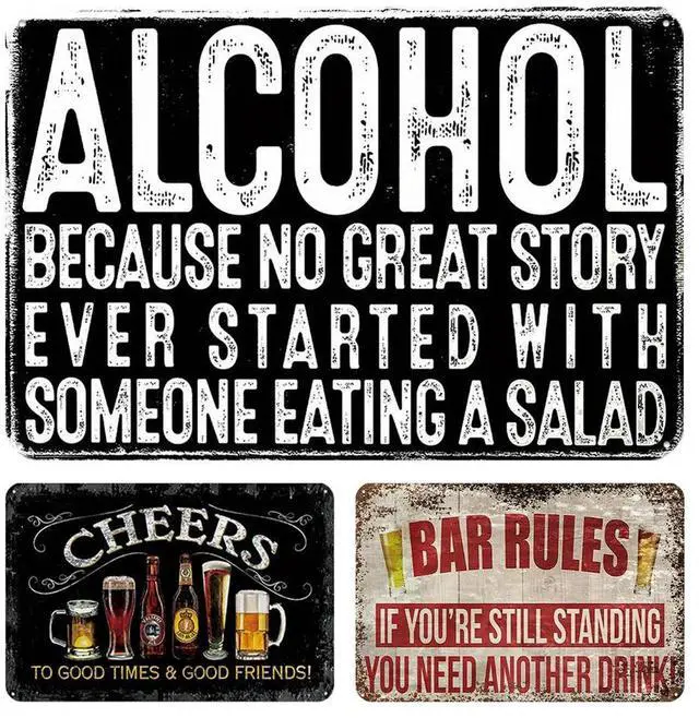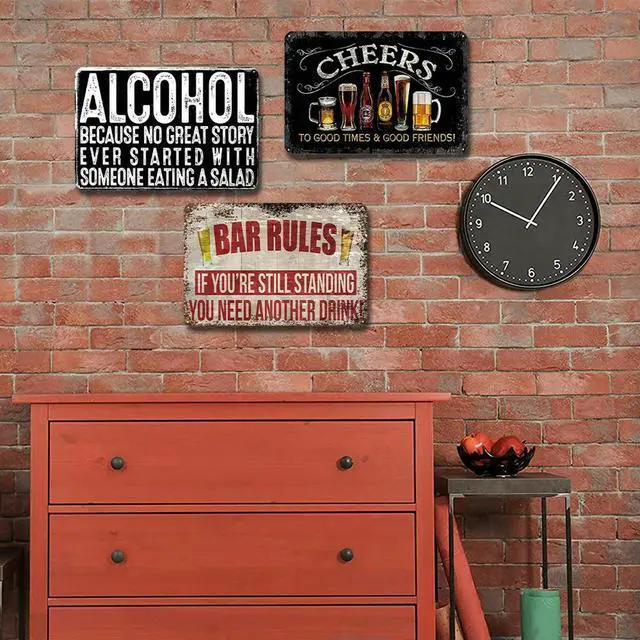 3Pcs Wine Vintage l Plate Rectangular Iron Painting Kit Decor 30x20cm