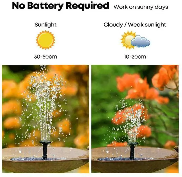 Outdoor Bird Bath Solar Powered Fountain Floating Water Pump Kits with 6 Spray Heads Pool Pond Aquarium Adornment