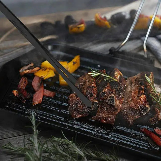 • 2PCS Kitchen Tongs for Cooking Stainless Steel l Fine Kitchen Utensils Precision Serrated Tips Long Tweezer Tongs BBQ Tool