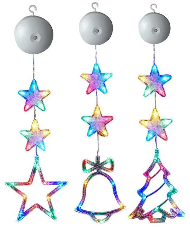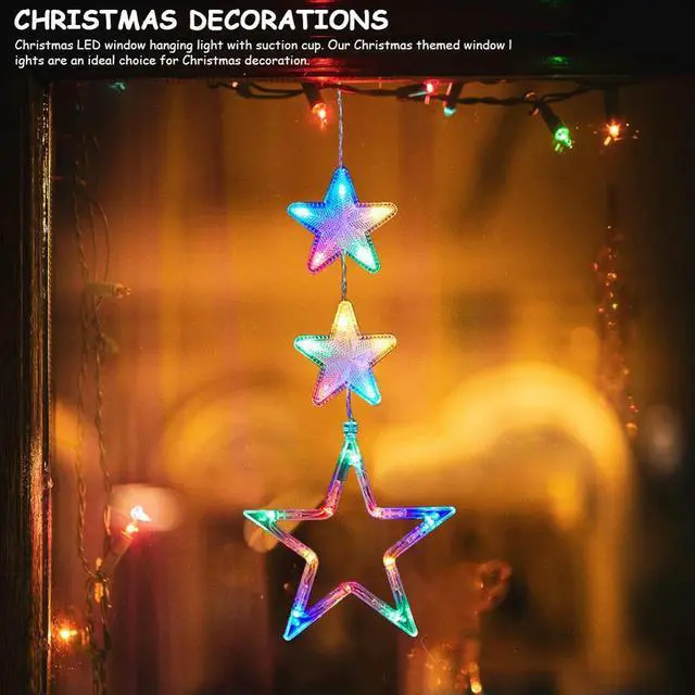 • 3 Pack Christmas Indoor Star Window Light with Suction Cup Light Up Hanging Christmas Decoration for Glass Window Outdoor Decor